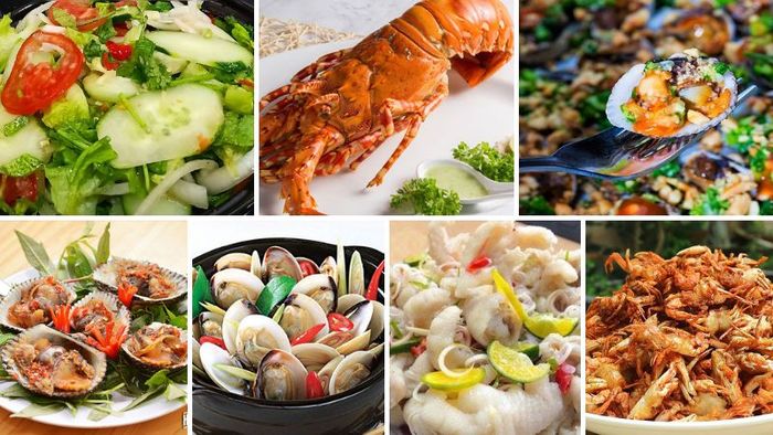 Món chính: Tôm hùm, Ốc hương, Sò huyết nướng mỡ hành, Cua, Mực, Ốc móng tay xào rau muống, Hàu nướng phô mai, Sò lông nướng muối ớt, Nghêu hấp sả, Sò lưỡi đỏ hấp, Ghẹ sữa rang muối.