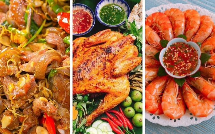 Món chính: Heo rừng xào lăn, Gà nướng muối ớt, Tôm hấp biaTráng miệng: Chè khoai môn