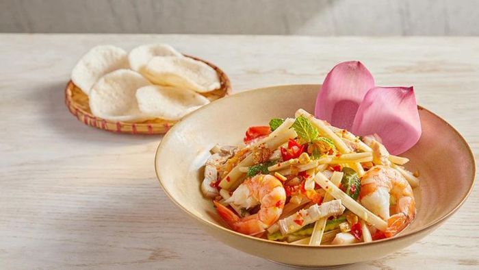Khai vị: Gỏi ngó sen, bánh phồng tôm