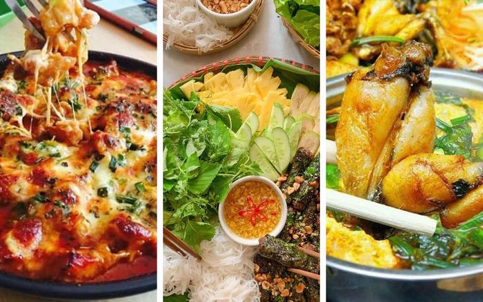 Món chính: Gà sốt phô mai, Bò cuốn lá lốt, Lẩu ếchTráng miệng: Sữa chua phô mai