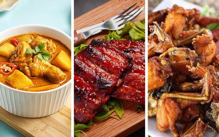 Khai vị: Gỏi bò rau mầm, Nem rán chua ngọtMón chính: Cà ri gà, Thịt heo nướng mật ong, Ếch chiên nước mắm