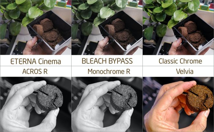 Fujifilm đã có nhiều chục năm kinh nghiệm trong việc tạo ra các hiệu ứng tương ứng với các loại phim truyền thống mà họ đã bán ra. Bây giờ họ mang sức mạnh đó lên máy ảnh kỹ thuật số. Trong X-T4 này có thêm hai giả lập BLEACH ByPass và Eterna Cinema. Mình để hai cái này ở trên đầu và tiếp theo là cái Classic Chrome mà mình hay xài để các bạn xem.