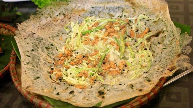 Bánh khoái có vẻ ngoại trông giống bánh xèo miền Nam, nhưng hương vị lại mang đặc trưng riêng của Thanh Hóa. Bột gạo tẻ được xay thành nước, kết hợp với rau cần, bắp cải, tép tươi. Tép tươi được xào chín, rau cần thân cắt khúc, bắp cải thái sợi nhỏ là những bước làm bánh khoái thơm ngon này.