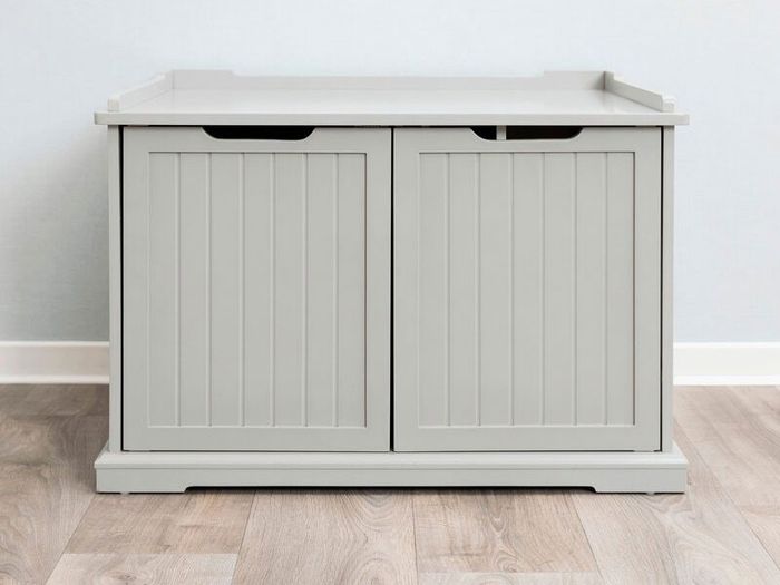 Giá của sản phẩm này có vẻ thay đổi thường xuyên, và có một vài đô la khác biệt giữa các màu sắc, nhưng đây vẫn là một ưu đãi khá tốt cho một mảnh đẹp của nội thất che đi hộp cát. Bên trong có một nơi để đặt một chiếc chảo thông thường và một lối vào nhỏ—một khu vực chờ đón nếu bạn muốn—nơi bạn nên đặt một chiếc thảm để bắt hạt cát lạc lõng trên đường đi ra. Có đủ không gian đầu để hầu hết mèo thoải mái sử dụng nó, nhưng không phải mèo nào cũng thích sự riêng tư. Nhà báo của MYTOUR, Louryn Strampe, sử dụng cái này và nó trông giống như một chiếc tủ nhỏ và hầu hết mọi người thậm chí không nhận ra cái gì ở bên trong.