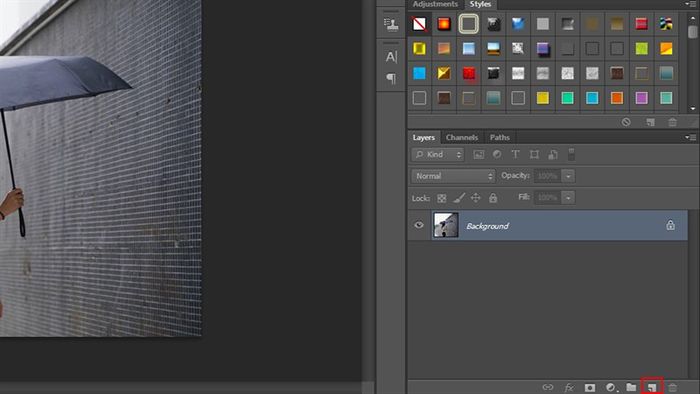 Bước 2: Tiếp theo, tạo một lớp mới bằng cách nhấp chuột vào biểu tượng Tạo một lớp mới hoặc nhấn tổ hợp phím Ctrl + J.
