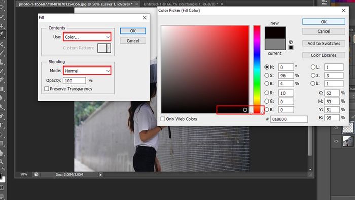 Bước 2: Trong Photoshop, mở File > Open để mở tệp hình ảnh bạn muốn chỉnh sửa và tệp ảnh texture mưa bạn mới tải về.