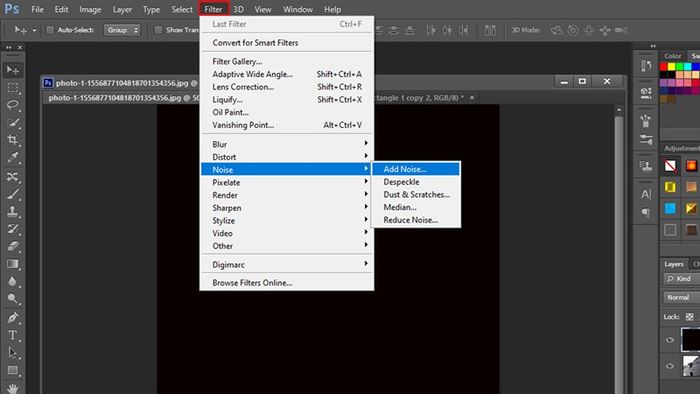 Bước 5: Tiếp theo, vào Lọc > Nhiễu > Thêm Nhiễu.