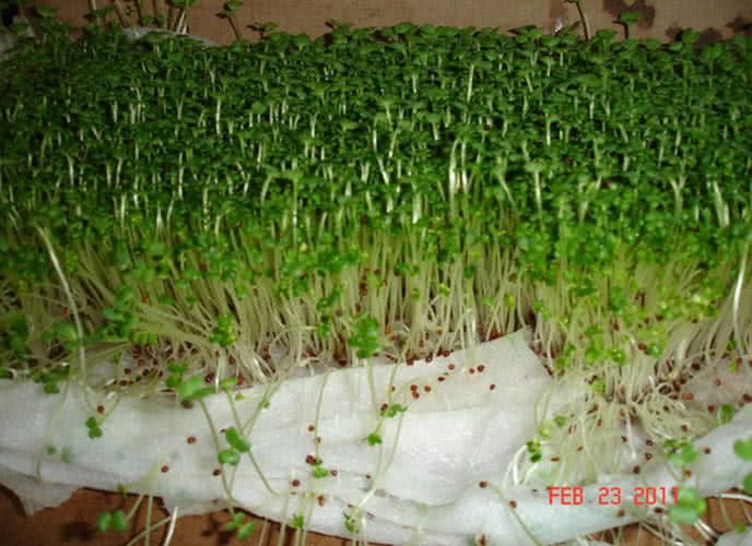 – Hãy tưới nước 1-2 lần hàng ngày. Mầm rau sẽ nảy mầm dần dần, và lượng nước cần nhiều hơn. Tuy nhiên, đừng quá tưới nước vì có thể gây ẩm. Để khay rau ở trong bóng tối tránh ánh sáng từ 1 đến 3 ngày tùy vào loại rau. Đừng lo lắng nếu rau trở nên vàng, khi đưa ra ánh sáng, chúng sẽ trở lại xanh ngay lập tức.