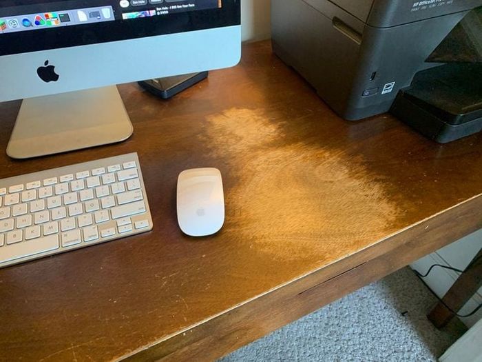 Mặt bàn đã trải qua 10 năm không sử dụng lót chuột.