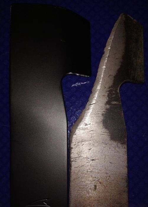 So sánh giữa lưỡi cắt cỏ đã sử dụng trên địa hình gồ ghề trong nhiều năm và lưỡi cắt cỏ mới là điều đáng chú ý.