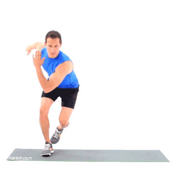 - Động tác nhảy co 1 gối chùng chân – Lunge Skip