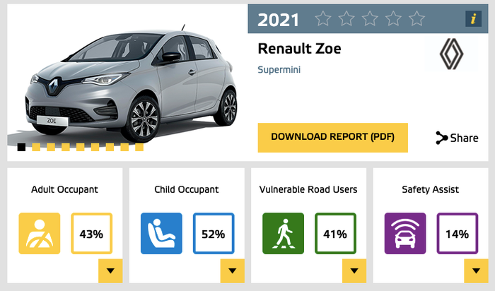 Mặc dù chỉ vài tháng trước đó, Renault Zoe có thể là xe điện bán chạy thứ tư ở châu Âu, nhưng nó đã thất bại nghiêm trọng trong các bài kiểm tra va chạm mới nhất của Chương trình Đánh giá Xe mới châu Âu (NCAP).