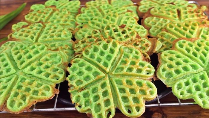 Bánh kẹp lá dứa có hình dạng hấp dẫn với hương thơm đặc trưng của lá dứa. Bánh được làm từ bột gạo, đường, dầu ăn và lá dứa xay nhuyễn. Khi thưởng thức, bạn cảm nhận hương ngọt từ đường, độ giòn mịn của bột gạo và hương thơm tinh tế từ lá dứa. Bánh có thể ăn trực tiếp hoặc chiên giòn để tăng thêm sự hấp dẫn. Giá dao động từ 10.000 đến 20.000 đồng/kg tùy loại.