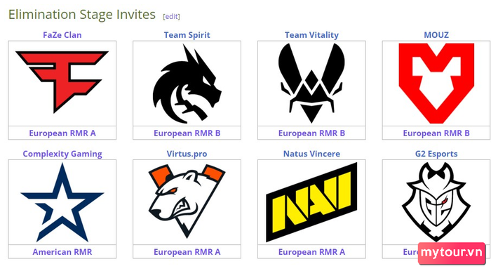 Danh sách 8 đội chờ đợi ở vòng Elimination Stage: