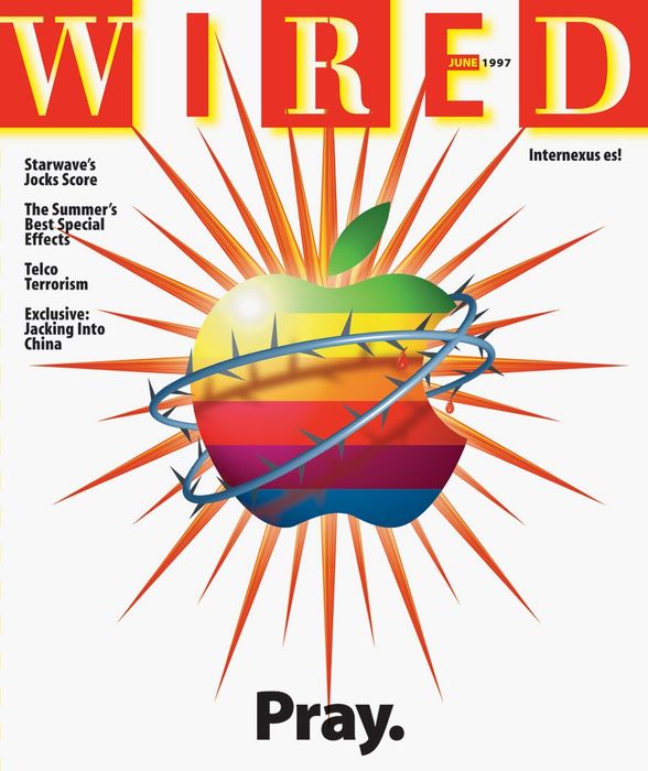 "Đây là một trong những điều tôi tự hào nhất. Jony Ive từng nói rằng điều này làm anh ta sợ hãi: Anh ấy nghĩ rằng Apple sẽ phải đóng cửa. Nhưng chúng tôi tạo ra hình ảnh này để kích thích mối liên kết tinh tế của khách hàng Apple đối với công ty, và sau đó, với tiêu đề, đơn giản chỉ là cầu nguyện cho Sự Trở Lại Thứ Hai của Steve. Và anh ấy đã trở lại một tháng sau đó! Tôi không bao giờ có cơ hội hỏi anh ấy, nhưng tôi hy vọng bìa của chúng tôi đã đóng một phần nhỏ trong sự trở lại của anh ấy, hoặc ít nhất là đúng thời điểm của nó." —John Plunkett