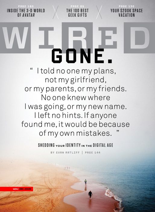 Vì vậy, sau khi chúng tôi dành một thập kỷ giải thích làm thế nào internet (đọc: Google) sẽ thu thập tất cả thông tin trên thế giới và biến nó trở nên hữu ích, chúng tôi xem xét những gì cần phải làm để tránh điều đó. Ngay trước khi khái niệm 'quyền được quên' bắt đầu lan truyền, chúng tôi yêu cầu Evan Ratliff thử biến mất. Kết hợp một ý tưởng tốt, sự nỗ lực để thực sự đưa nó vào thực tế, và sự tài năng của một nhà văn xuất sắc, bạn sẽ có điều kiện cho một điều gì đó thực sự độc đáo và tiết lộ. Không thể quên, một cách hài hước đấy." —Chris Anderson, khi đó là biên tập chính