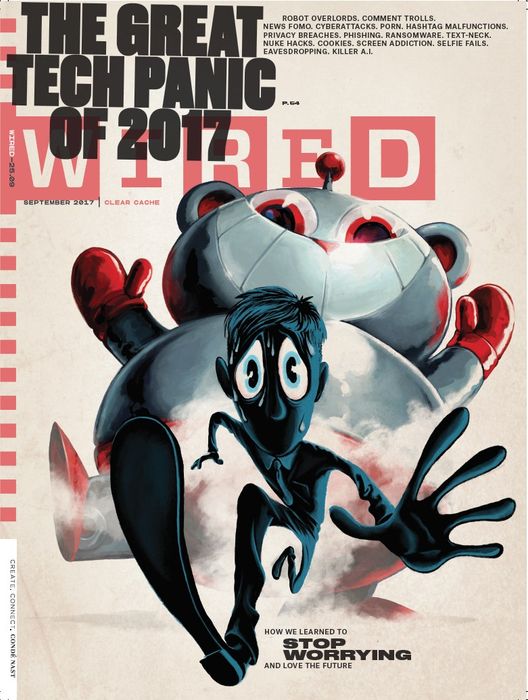 “Làm thế nào để truyền đạt rằng thế giới đang lo sợ về công nghệ? Chúng tôi muốn ý tưởng đó, nhưng chúng tôi không muốn nó quá tối tăm hoặc mòn mỏi. Vì vậy, giám đốc sáng tạo David Moretti quyết định thử một cái gì đó điên rồ: Truyền đạt ý tưởng một cách rõ ràng nhưng không đe dọa. Cuối cùng, tôi đã rất thích thiết kế của toàn bộ số này và có một bức in lớn của tác phẩm nghệ thuật của Zohar Lazar trong văn phòng của mình.” —Nick Thompson, biên tập trưởng