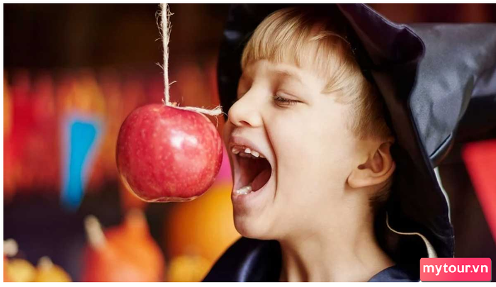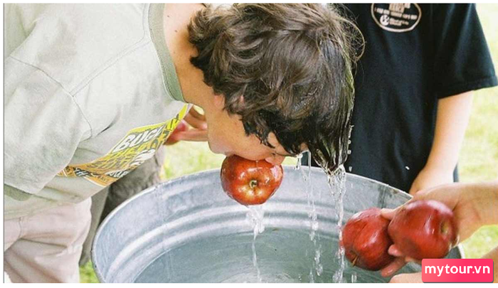 Trong trò chơi Halloween Vớt táo, trẻ em tham gia nhiệm vụ lấy táo từ bồn nước chỉ bằng miệng mà không sử dụng tay. Người chơi nào lấy được táo mà không làm rơi vào nước sẽ là người chiến thắng và đươc thưởng.
