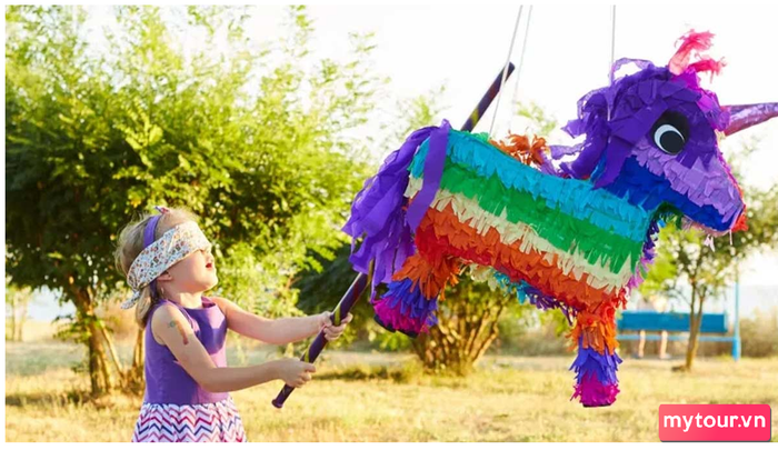 Trò chơi Phá vỡ Pinata là một hoạt động thú vị trong mùa Halloween. Đây là khoảnh khắc mà cả trẻ em và người lớn đều thích thú, cầm cây gậy đặc biệt và nhắm vào mục tiêu là chiếc Pinata đang đầy ắp kẹo ở trên cùng.