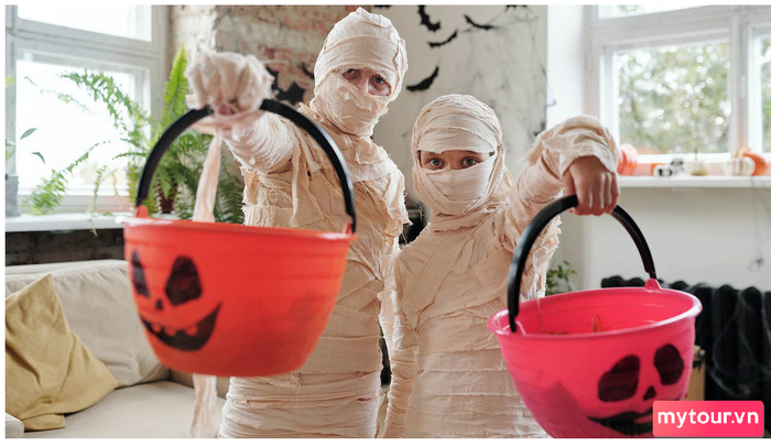 Trò chơi Halloween này thể hiện sự sáng tạo của trẻ em và tạo ra trang phục xác ướp độc đáo nhất trong lễ hội Halloween. Bạn cũng có thể tham gia cùng trẻ em và khám phá thế giới ma quái.