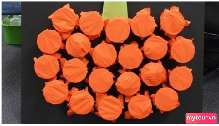 Cuối cùng, sử dụng băng keo để gắn những chiếc cốc này lên một tấm bảng lớn. Trong trò chơi, các em sẽ tự do lựa chọn phần quà mà họ muốn bằng cách xé giấy màu ở miệng của cốc để tiết lộ phần thưởng bên trong.