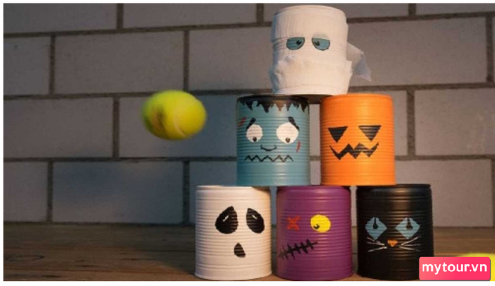 Nếu bạn muốn trải nghiệm một phiên bản độc đáo của trò chơi bowling, sử dụng vỏ lon là một ý tưởng thú vị. Đơn giản chuẩn bị một số vỏ lon rỗng, sau đó trang trí chúng bằng cách sơn hoặc dán giấy màu. Thêm hình ảnh của những nhân vật kinh dị lên bề mặt của lon và bạn đã sẵn sàng tổ chức trò chơi Halloween thú vị tại bữa tiệc.