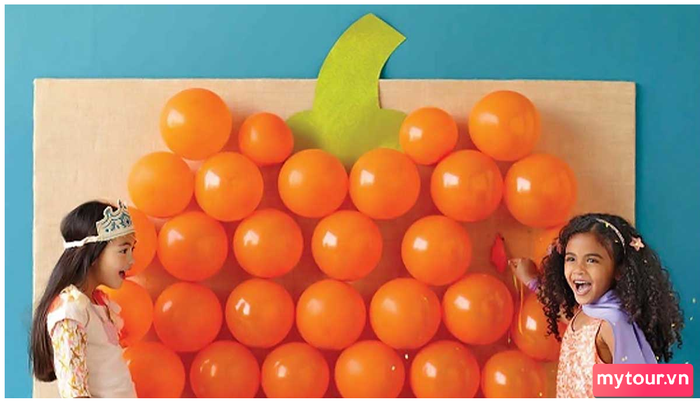 Để chuẩn bị cho trò chơi Halloween này, bạn chỉ cần gấp mẫu giấy chứa tên các phần thưởng và đặt chúng vào bên trong các quả bóng bay. Sau đó, bắt các quả bóng bay lớn lên một tấm bìa hoặc tường và tạo hình chúng giống như quả bí ngô (đừng quên thêm chi tiết trang trí để làm cho chúng thêm thú vị). Trong buổi tiệc, các em nhỏ sẽ nổ các quả bóng và nhận phần thưởng tương ứng.