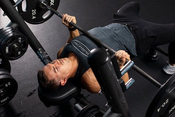 - Nằm ngửa trên băng ghế phẳng, đưa tay ra ngang vai và nhấc thanh đòn từ giá đỡ. Giữ thanh đòn thẳng tay, vuông góc với sàn nhà - đây là tư thế bắt đầu.