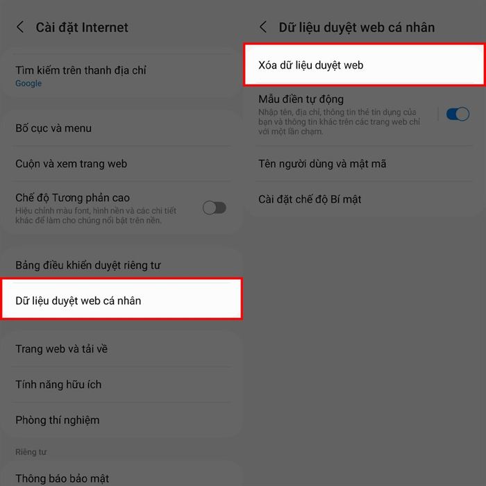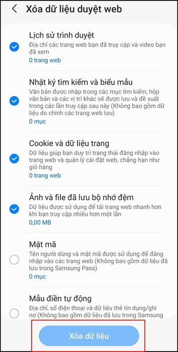 3. Xóa bộ nhớ cache và cookie trên trình duyệt Samsung Internet