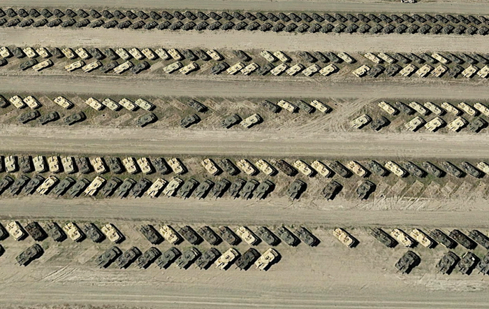 Ước tính cho biết, căn cứ lớn này chứa hơn 26.000 xe bọc thép. Chúng trở thành một phần quan trọng của kho chứa rộng 36.000 mẫu Anh - nơi nghỉ ngơi của nhiều loại xe bọc thép, xe kéo, xe tải và phương tiện khác của quân đội Mỹ.
