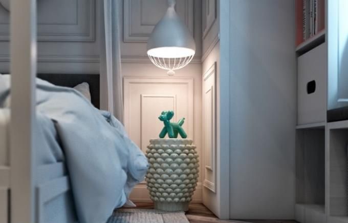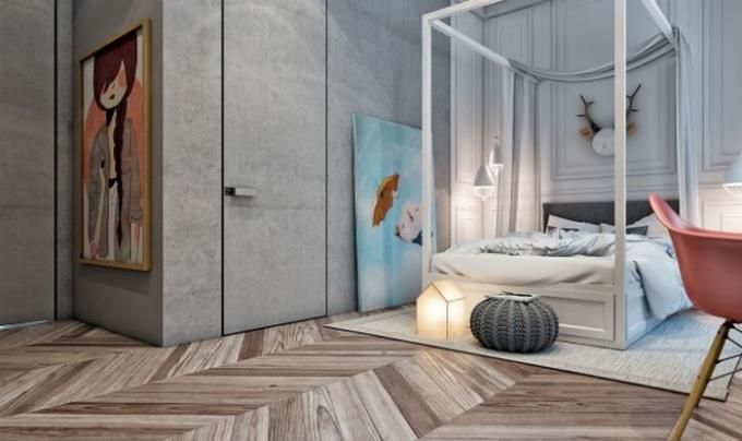 Các nhà thiết kế đã chọn một gam màu lạnh và tinh tế cho căn phòng, phù hợp với những người yêu thích phonh trọng và hiện đại. Từ ghế ngồi gần cửa sổ đến giường canopy kiểu cách, mọi thứ đều nhấn nhá bởi gam màu lạnh, tạo ra không gian thư giãn cho những buổi sáng muộn hoặc ngày cuối tuần. Các tác phẩm nghệ thuật đẹp mắt là điểm nhấn của căn phòng, phù hợp cho những người trẻ yêu thích nghệ thuật.