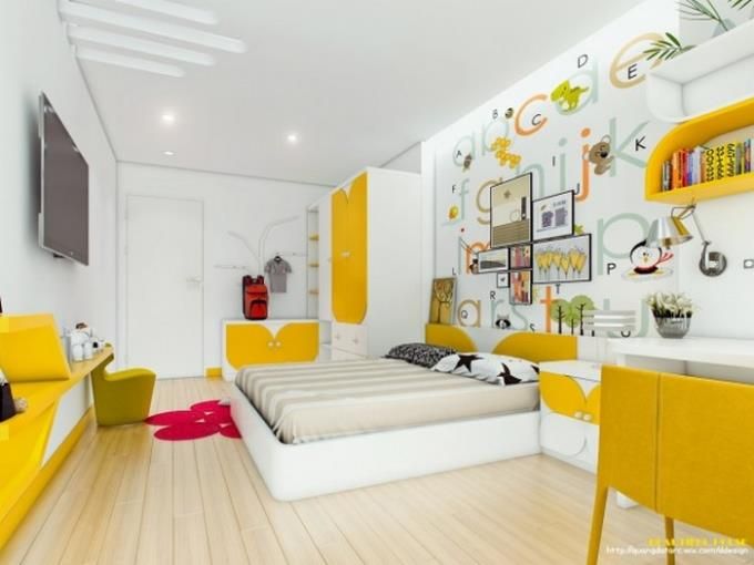 2. Phòng ngủ với gam màu vàng dành cho thanh thiếu niên năng động