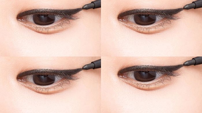 Vẽ eyeliner bắt đầu từ giữa mắt và kéo đều theo viền mắt