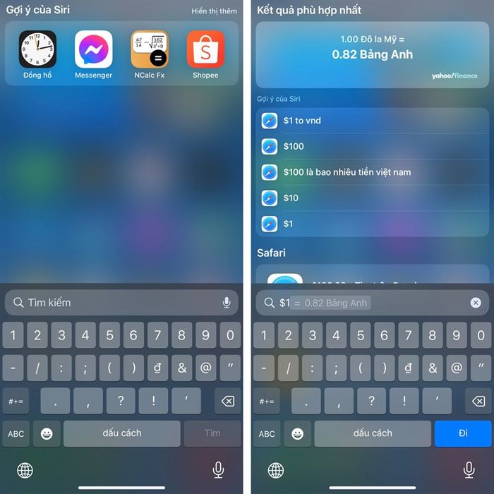 Tại màn hình chính, vuốt xuống để mở Spotlight Search > Nhập số tiền cần chuyển đổi để nhận kết quả ngay lập tức.