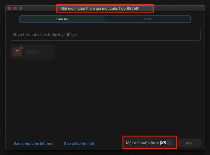 Bước 4: Tại đây sẽ hiển thị ID và mật khẩu phòng Zoom.