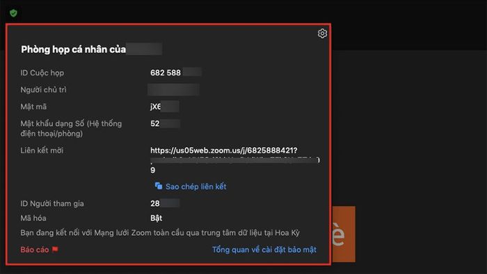 2. Lấy ID và mật khẩu phòng Zoom trên máy tính