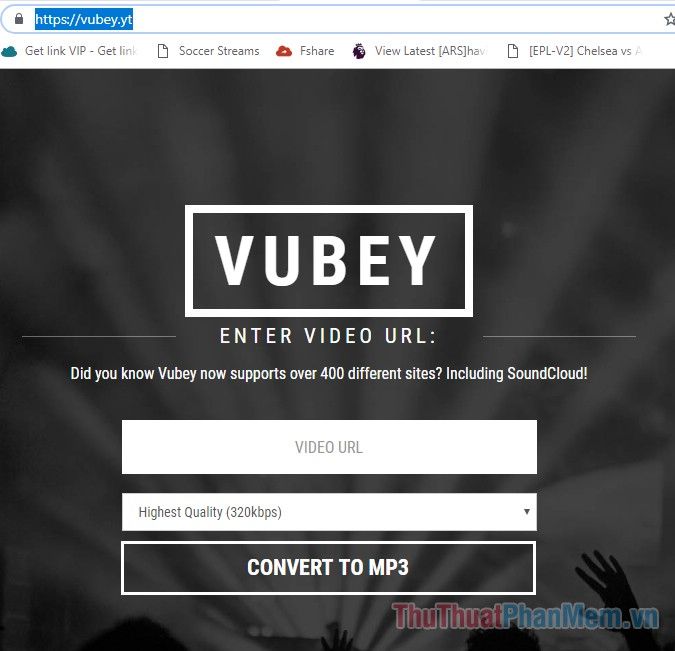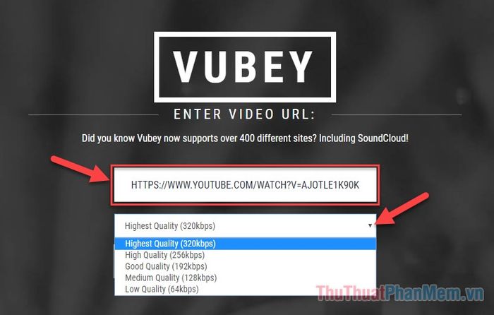 Vubey - công cụ trực tuyến mạnh mẽ giúp chuyển đổi video Youtube thành file nhạc nhanh chóng và tiện lợi, hỗ trợ tải nhạc với chất lượng cao lên đến 320kbps, và hỗ trợ trên 400 trang web khác nhau bao gồm cả SoundCloud, DailyMotion…