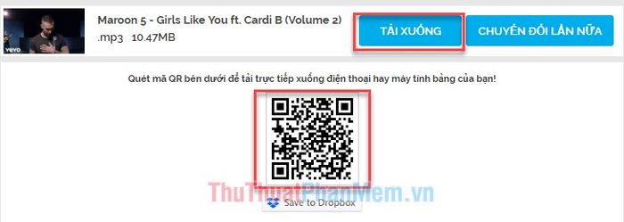 Bước 3: Sau khi quá trình chuyển đổi hoàn tất, hãy chọn “Tải xuống” để lưu bài hát của bạn. Ngoài ra, bạn cũng có thể tải về Dropbox bằng mã QR.