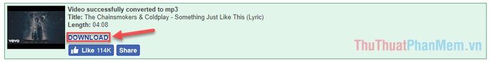 Bước 3: Sau khi quá trình chuyển đổi hoàn tất, chọn “Tải xuống” để lưu bài hát từ Youtube về máy tính.