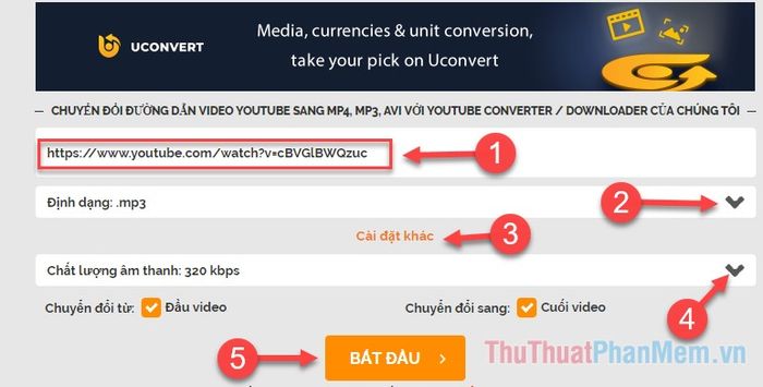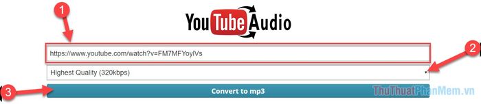 - (1) Sao chép đường dẫn video trên Youtube mà bạn muốn chuyển đổi sang định dạng nhạc mp3, sau đó dán vào ô “Youtube URL”
