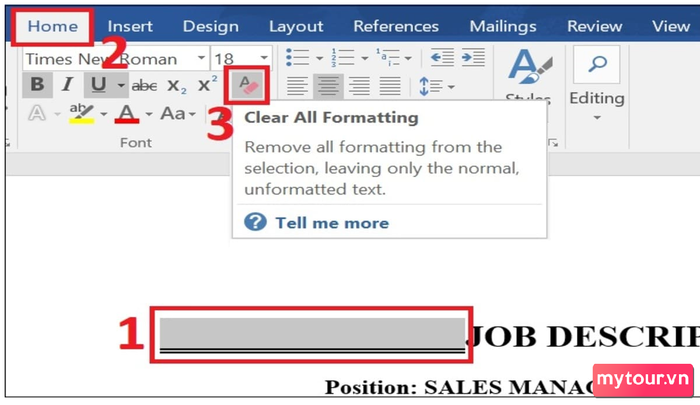 Cách xóa dòng kẻ ngang trong Word bằng lệnh Clear All Formatting thực hiện như sau: