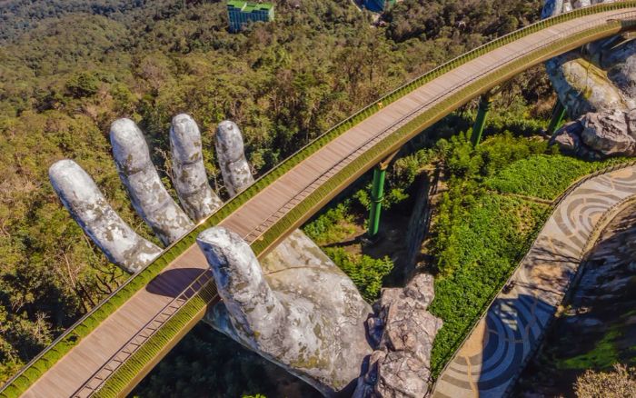 Cuối năm đến Đà Nẵng, bạn không thể bỏ qua chuyến tham quan Bà Nà Hills với cảnh quan núi non hùng vĩ và cây Cầu Vàng nổi tiếng với đôi bàn tay khổng lồ. Đừng quên ghé thăm Ngũ Hành Sơn với các ngôi chùa cổ và hang động huyền bí, hay dạo quanh cầu Rồng – biểu tượng của thành phố – để đắm mình trong không khí lễ hội và ánh sáng rực rỡ từ các cây cầu bắc qua sông Hàn.