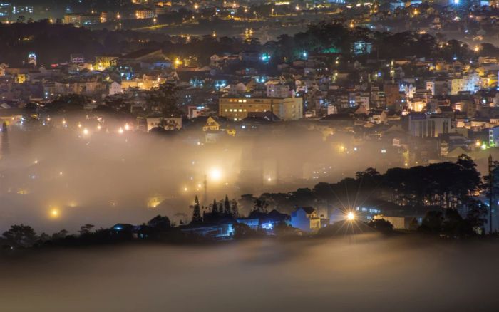 Đà Lạt vào dịp Noel thực sự là thời điểm đẹp nhất trong năm. Không khí se lạnh kèm sương mù giăng lối khiến thành phố thêm phần lãng mạn. Hãy tưởng tượng cùng người thương tay trong tay dạo bước trên quảng trường Lâm Viên, thưởng thức một ly cà phê nóng và ngắm nhìn Đà Lạt lung linh về đêm – thật tuyệt vời phải không?