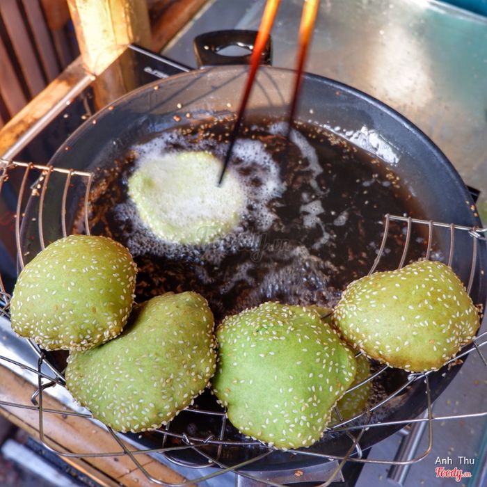 2. Bánh Tiêu Lá DứaLàm bánh tiêu lá dứa bằng cách nặn bột sau đó trộn với mè và dùng thanh lăn để làm dẹp ra rồi chiên. Khi bánh chín thơm mùi lá dứa, ai cũng muốn thưởng thức hết quầy bánh. Bánh ngon và giá rẻ chỉ 5k/1 cái. Thay vì ăn bánh tiêu truyền thống, thử món này để trải nghiệm hương vị mới lạ.