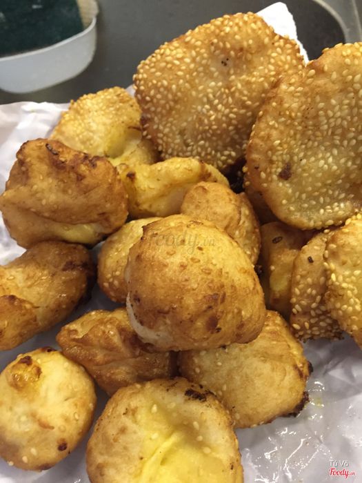 4. Bánh Tiêu kẹp Bánh BòXe bánh tiêu này mình ăn từ khi còn nhỏ, vẫn giữ được vị ngon và chất lượng như ngày nào. Xe bánh này có lịch sử 20 năm rồi đấy. Đồ ăn đa dạng từ bánh tiêu, bánh bò, bánh mè, bánh bao mặn, bánh bao ngọt, bánh xếp pate, quẩy, với giá chỉ từ 3-5k. Bánh được chiên mới liên tục nên luôn nóng hổi và ngon, không bị ngán.