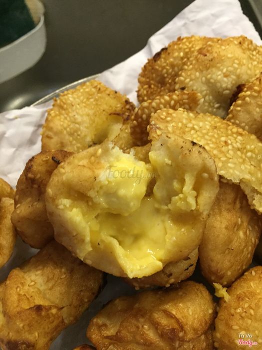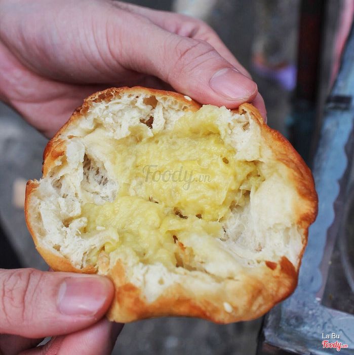 Mê sầu riêng lắm nên nghe chỗ nào có sầu riêng là mò lại liền. Chú bán trên 1 xe đẩy nhỏ trước hẻm 120 Hà Tôn Quyền. Buổi sáng thì bán trước số 135 cùng đường đó. Chú có 2 loại bánh tiêu: sầu riêng 6k và thường 2k. Chú không chiên sẵn nhiều, đợi khách tới mới làm nên bánh lúc nào cũng nóng hổi. Nhân nhiều, không phải ăn lấy hương lấy hoa. Vỏ bánh nóng hổi, không quá dày, ráo dầu nên ăn lần 2-3 cái cũng không ngán. Size nhỏ, dễ ăn không sợ no hay nặng bụng.