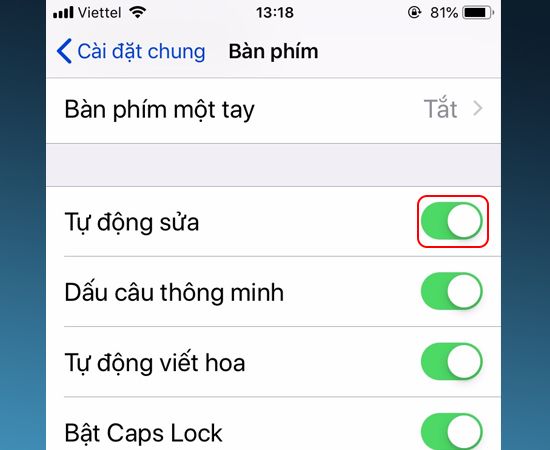 Cài đặt -> Cài đặt chung -> Bàn phím -> tắt Tự động sửa.