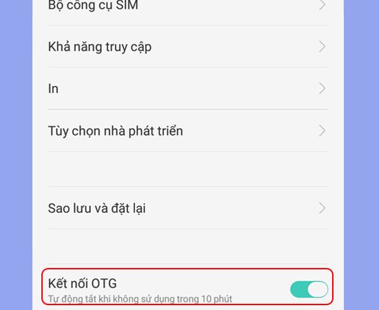 Bước 3: Kích hoạt chức năng Kết nối OTG