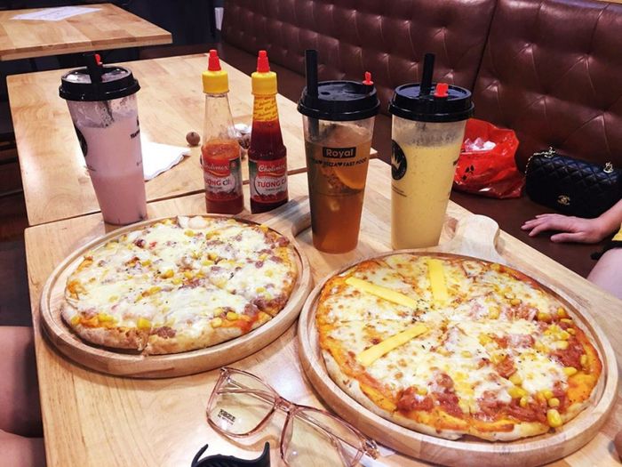 Royaltea Pizza là địa điểm lý tưởng cho những người yêu pizza và thích trà sữa. Quán có không gian sang trọng, thoải mái, thu hút khách mọi lứa tuổi.