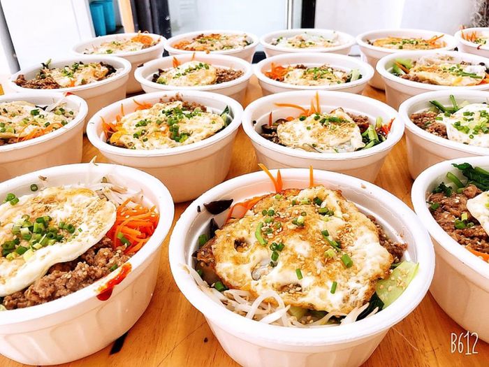 Cơm trộn mang về không chỉ ngon miệng mà còn rất bắt mắt, được đóng gói cẩn thận.